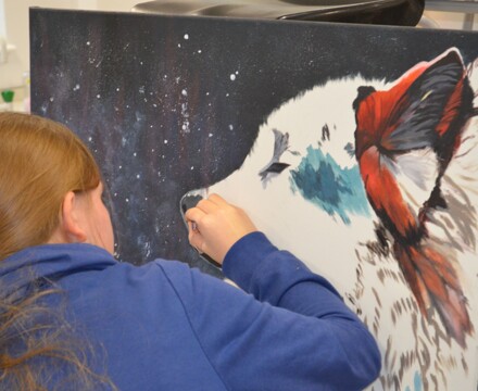 Our Year 11 Art GCSE students continue to demonstrate their skill today, as they produce large scale paintings for the culmination of their 'Land, Sea and Sky' topic.