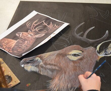 Year 11 artists have been hard at work completing their final outcomes for the 'Land, Sea and Sky' component of their portfolios. The group have worked in acrylic on canvas, and demonstrated great skill during the ten hour timed project.
