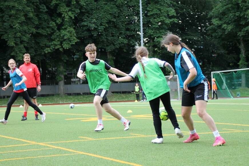 Following a busy start to their time in Germany, on day 3 of the Cologne sports trip the students were able to go to a professional club and had the opportunity to learn new football skills with professional coaches! The group was put through its paces, with shooting and passing drills, ending with a full match. The session was a tough but fantastic challenge for all of the students and they thoroughly enjoyed the whole experience.