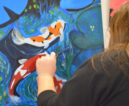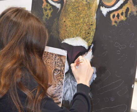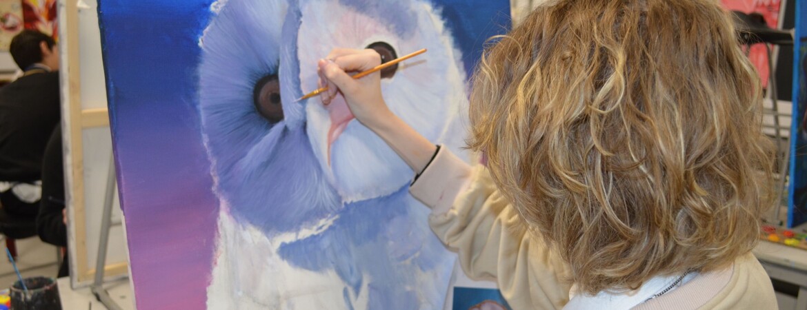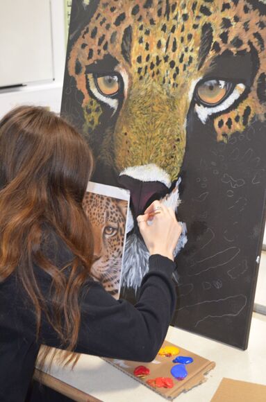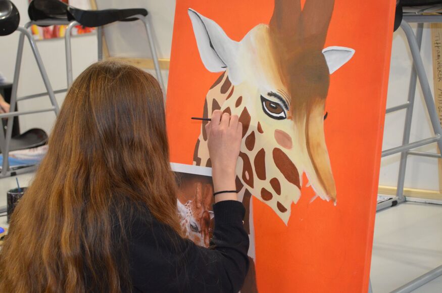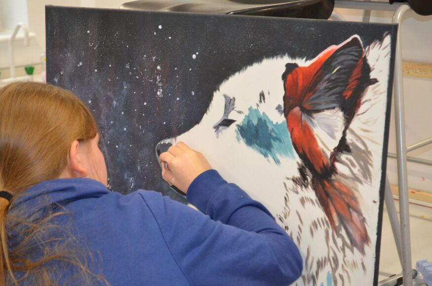 Our Year 11 Art GCSE students continue to demonstrate their skill today, as they produce large scale paintings for the culmination of their 'Land, Sea and Sky' topic.