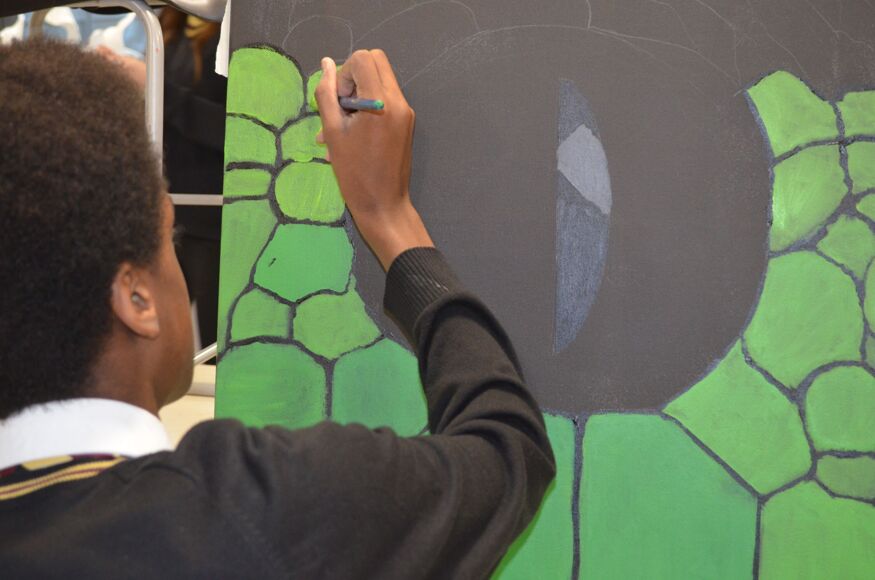 They are showing great resilience and determination to complete these wonderful outcomes over the course of two days -- ten hours in total. The Hertswood art faculty are very proud of their achievements, and look forward to sharing the finished works.