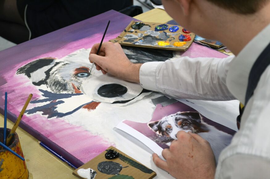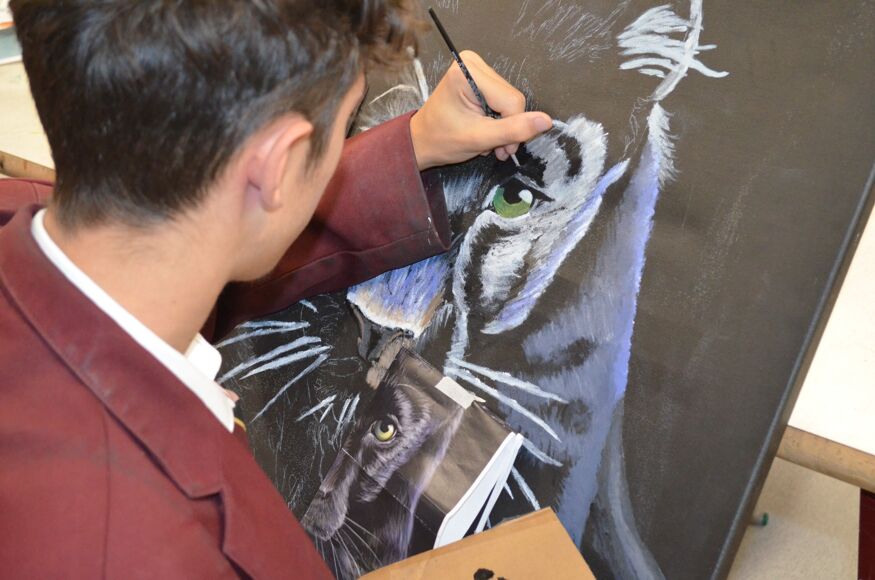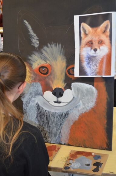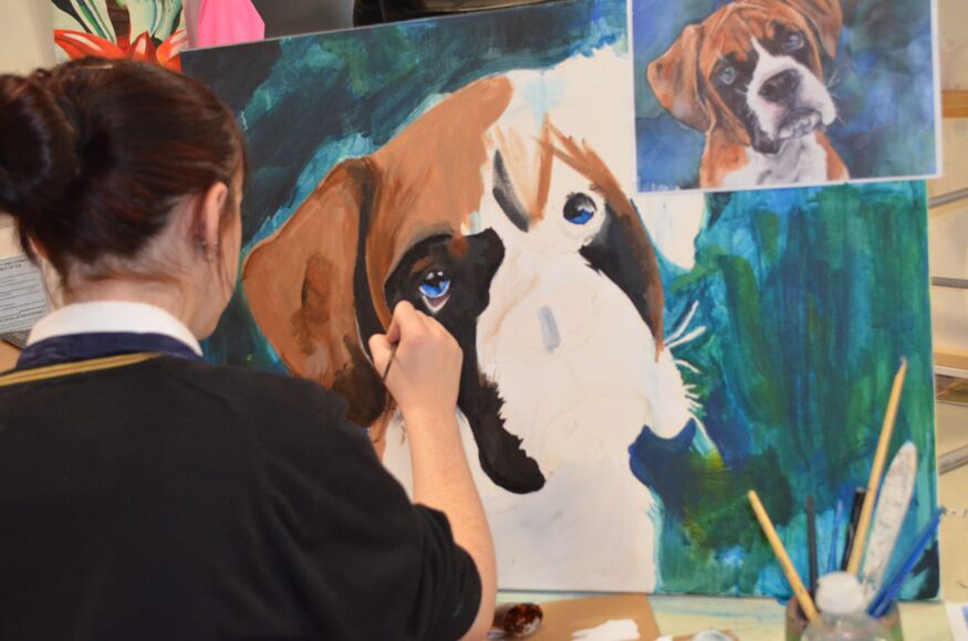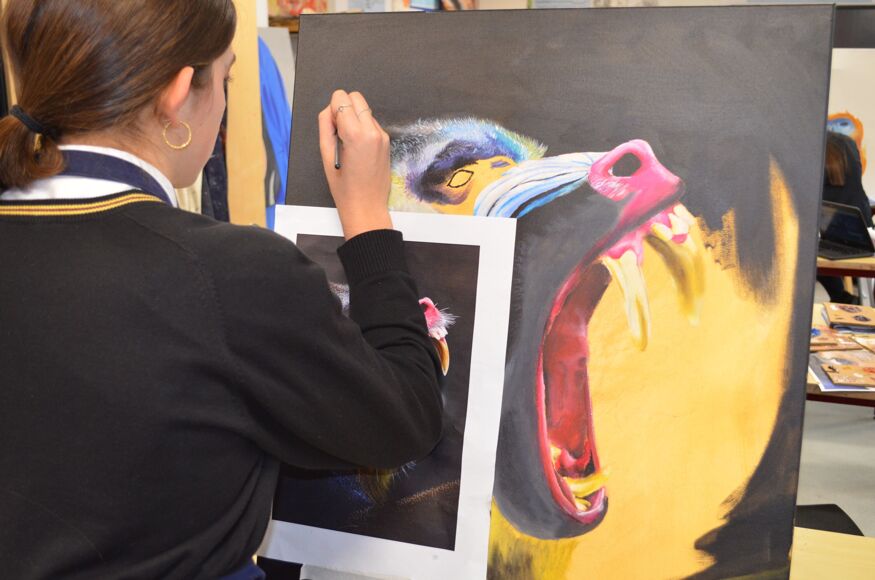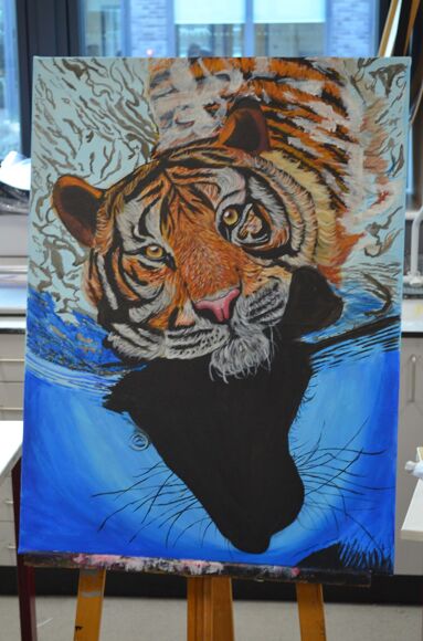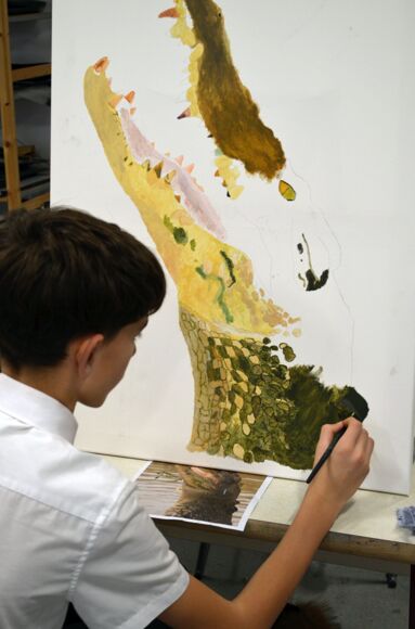 Following our article last week, even more of our Year 11 GCSE Art students have moved on to their end of topic large-scale pieces, under the banner of 'Land, Sea and Sky'. We are delighted to share more photos of the fantastic paintings as the students continue their efforts.
