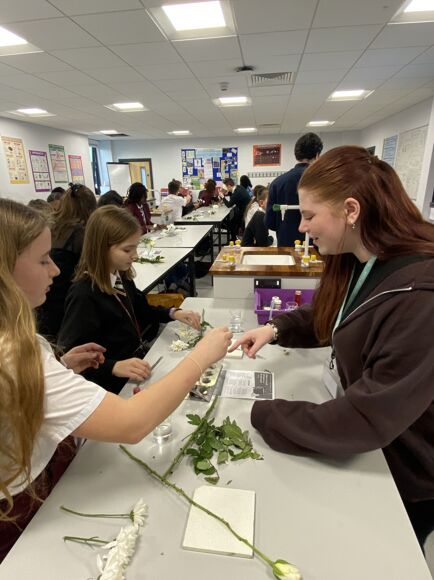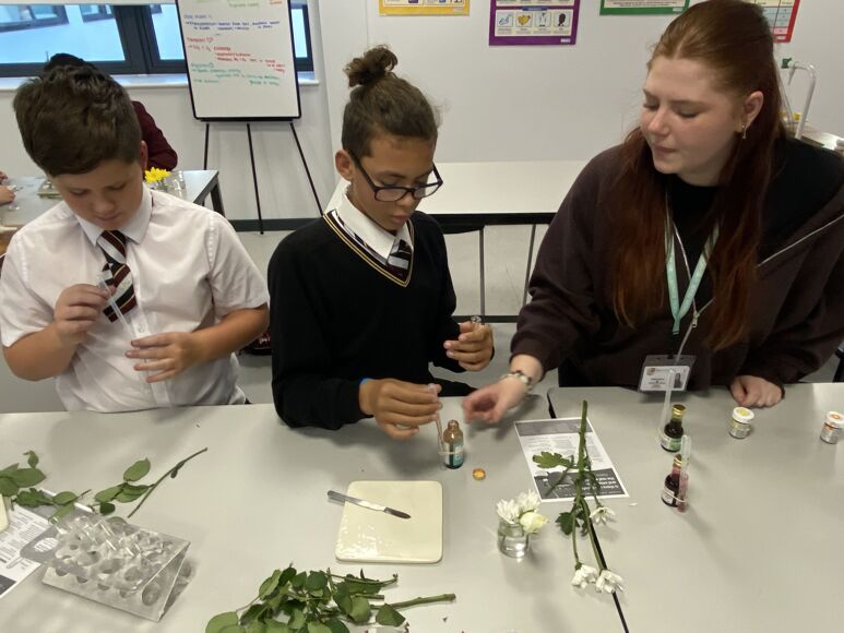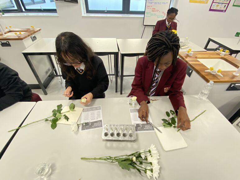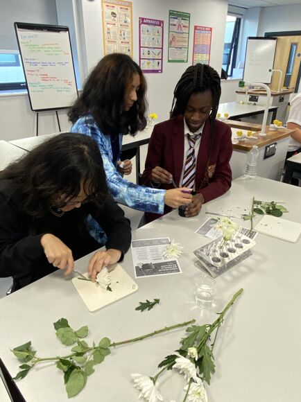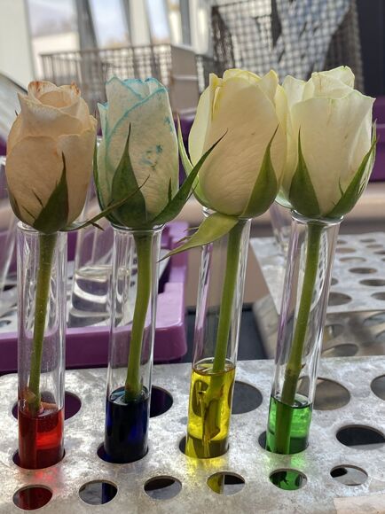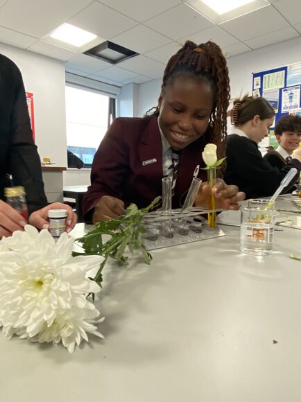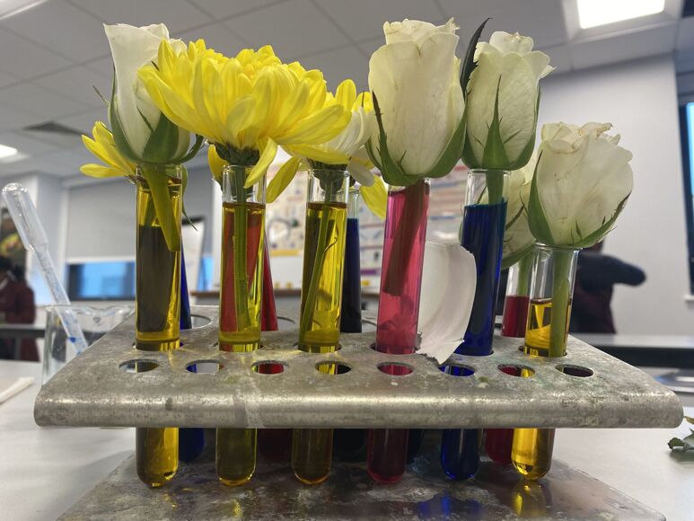 The Sixth Form students will be planning an experiment each week for the Year 7 and 8 students in the club to perform. Last week was the 'Magic Flowers' experiment, where students use the gravity-defying 'capillary action' of plants, along with water dyed in various colours, to change the colours of flowers' petals.