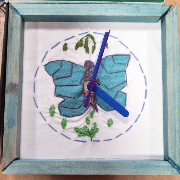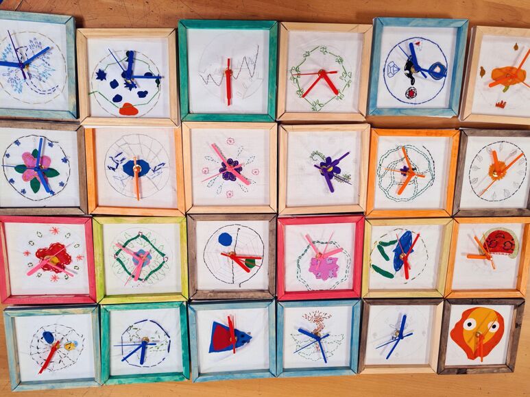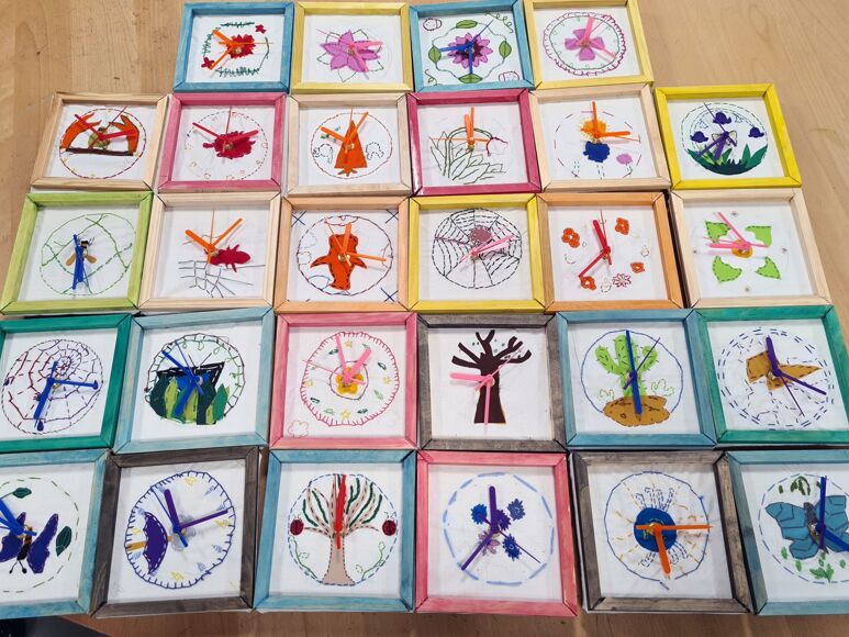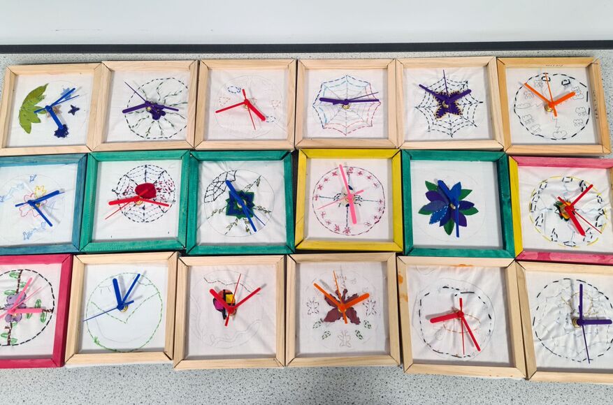 In their DT classes our Year 8 students have been exploring the theme of biomimicry in the production of a clock. The groups have learned the stitching techniques of appliqué and embroidery, and put them to excellent use. They also learned how to manufacture a frame with a mitre joint, using production aids such as a mould, jigs and templates.