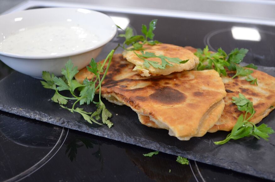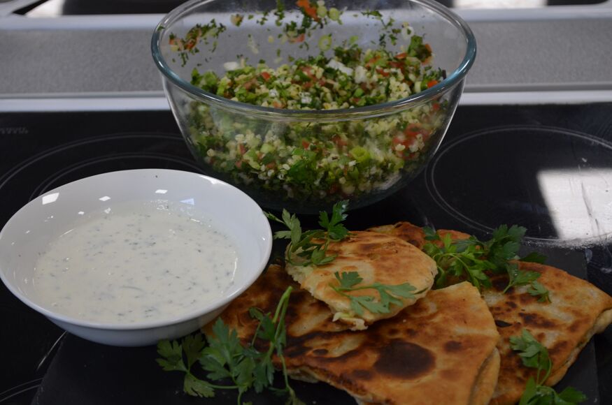 Bolani is a fried flatbread, filled with potato and herbs, and served with a yoghurt dip and tabbouleh. Students and staff who were lucky enough to try some of the finished dish were happy to confirm that it tasted wonderful.