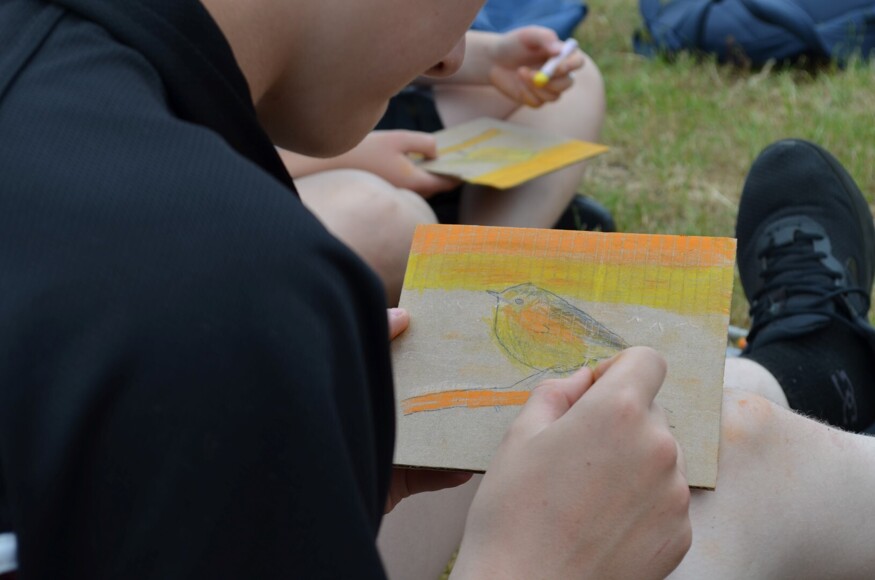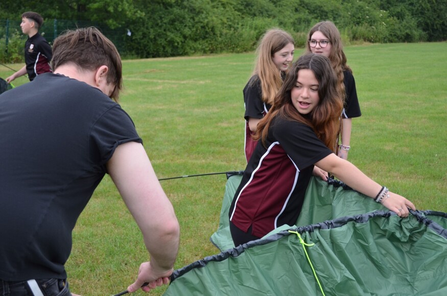 The year group then split into their Houses and made their way outside for a series of activities through the day, working to develop skills. These included making dampers (bread on sticks) and s'mores, orienteering, tent pitching, and outdoor artwork based on their House birds.