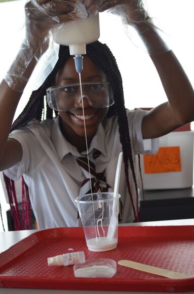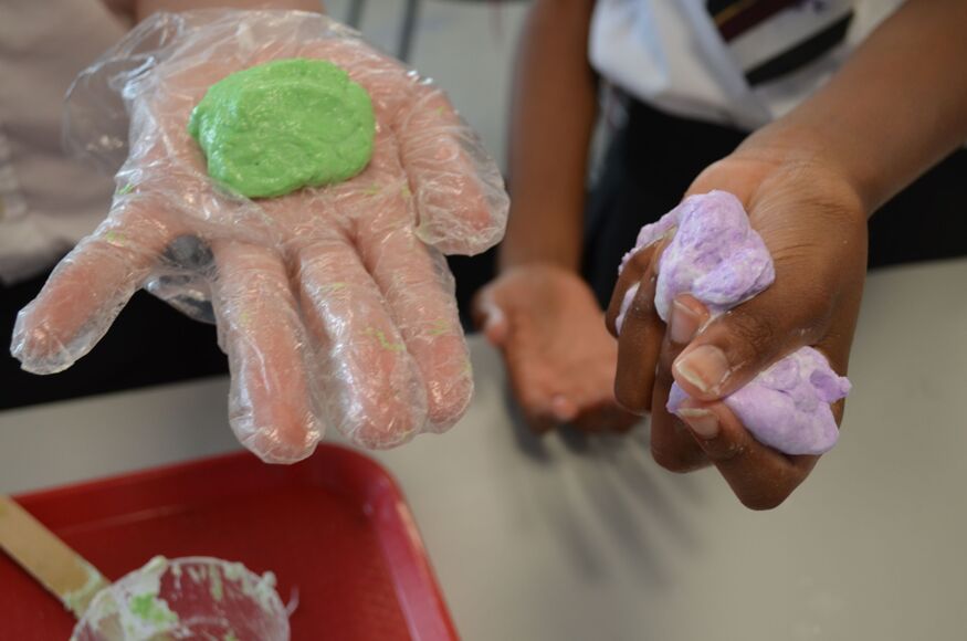 The students experimented with varying the quantities of the ingredients, to examine and compare the properties of the resulting slime, and finished by considering the type of marketable product their work could relate to.