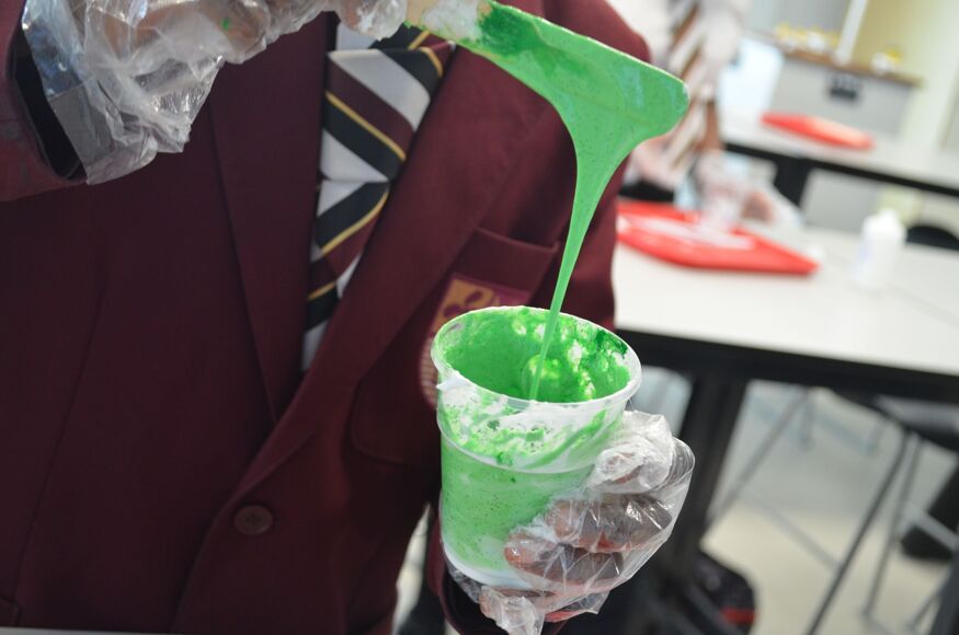 Non-Newtonian fluids are a special kind of liquid that can sometimes act like a liquid, and sometimes act like a solid. Students in Chemistry Club learned about this concept, and about the term 'viscosity', by creating their own slime out of PVA glue, bicarbonate of soda, shaving foam, and eye drops.