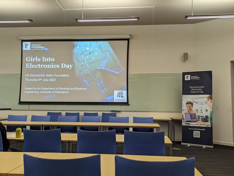 On Thursday 6th July, a group of Year 10 students visited the University of Nottingham for the 'Girls Into Electronics' event. This included a variety of electronic engineering activities, a tour of the University's facilities, and hearing from some graduates in the field.