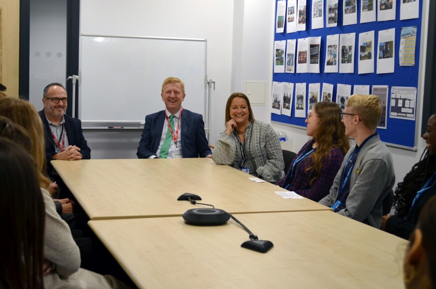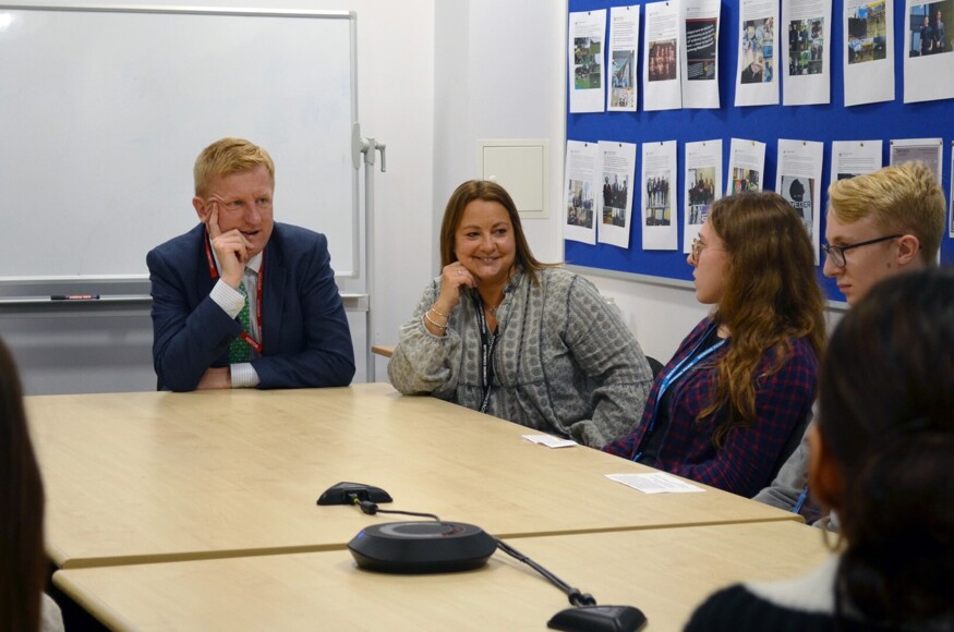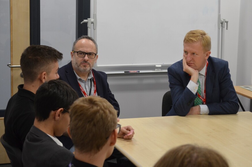 After a tour of the new school buildings, which Mr Dowden also visited during construction, he sat with the group of politically minded students to take questions, along with ward County Councillor, Morris Bright, and ward Borough Councillor, Natalie Susman.