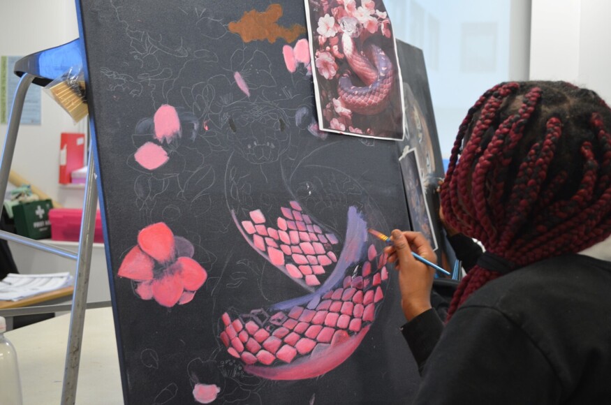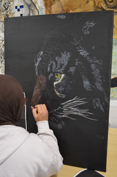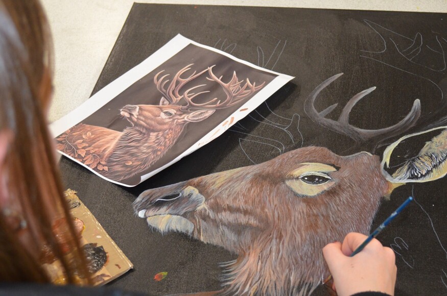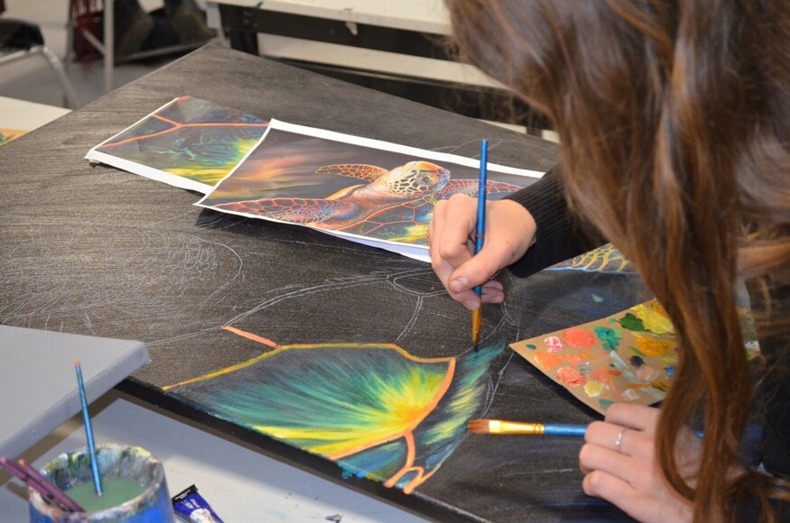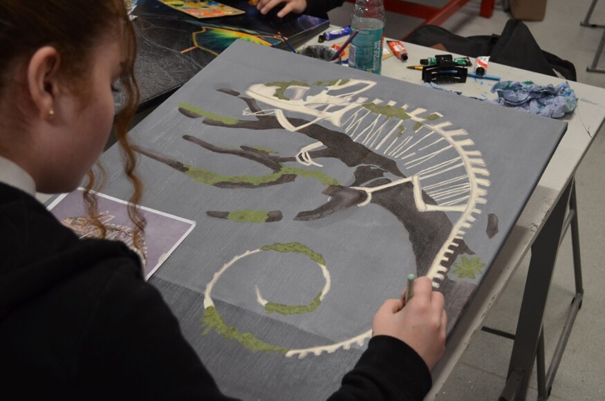 Year 11 artists have been hard at work completing their final outcomes for the 'Land, Sea and Sky' component of their portfolios. The group have worked in acrylic on canvas, and demonstrated great skill during the ten hour timed project.
