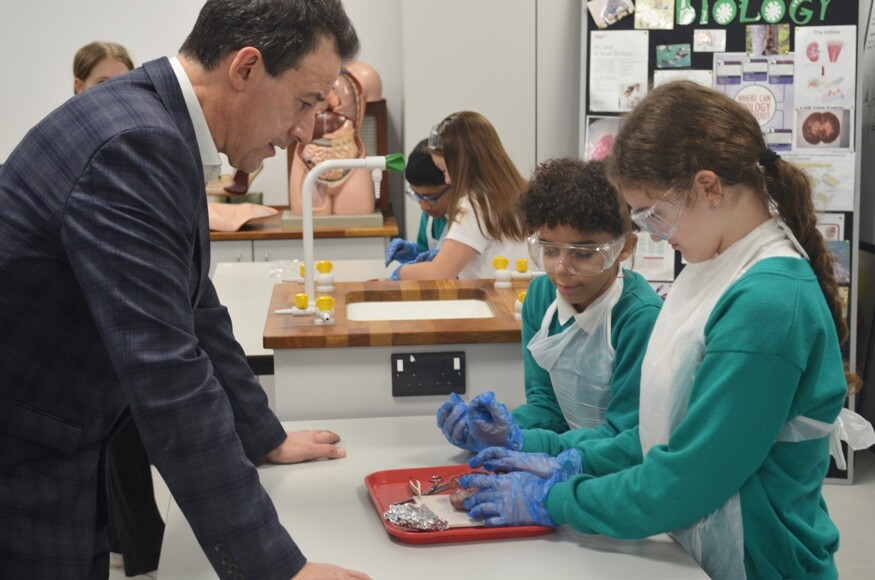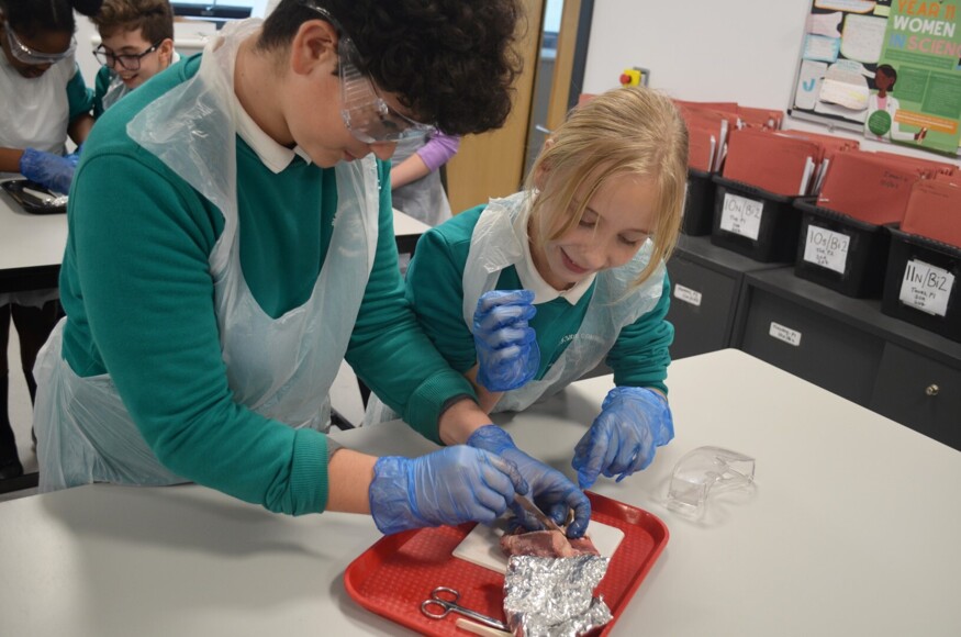 Last week the Biology team were pleased to welcome a group of Year 6 students from Parkside Community Primary School. In the Autumn Term, the students have been learning about the structure of the heart, and we were delighted to share our lab facilities with them so they can experience a full, safe, and hands-on lesson on dissection.