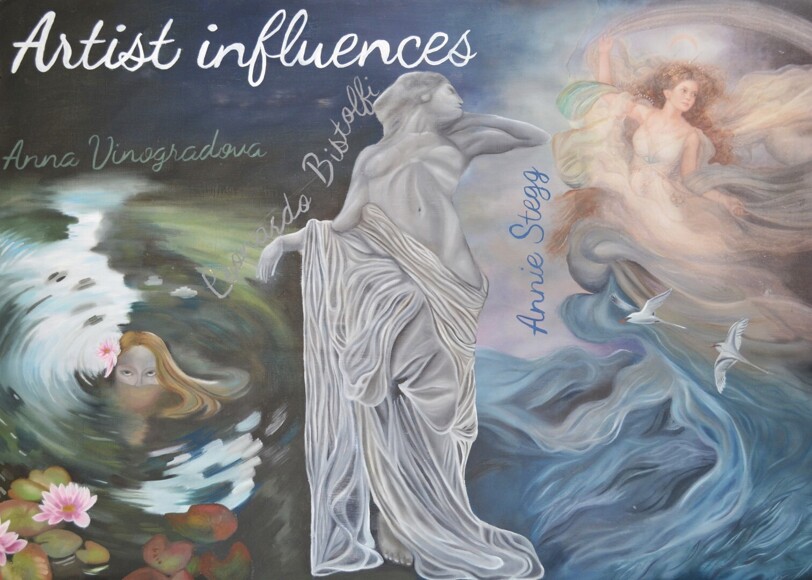 'My passion lies in painting in oils, where I heavily lean into the themes of reflection, water and nature. I'm especially proud of my surface outcome which combines portraiture and water. Going into university next year, I am applying to Sociology courses, however I will continue to pursue my passion for art!' -Mia