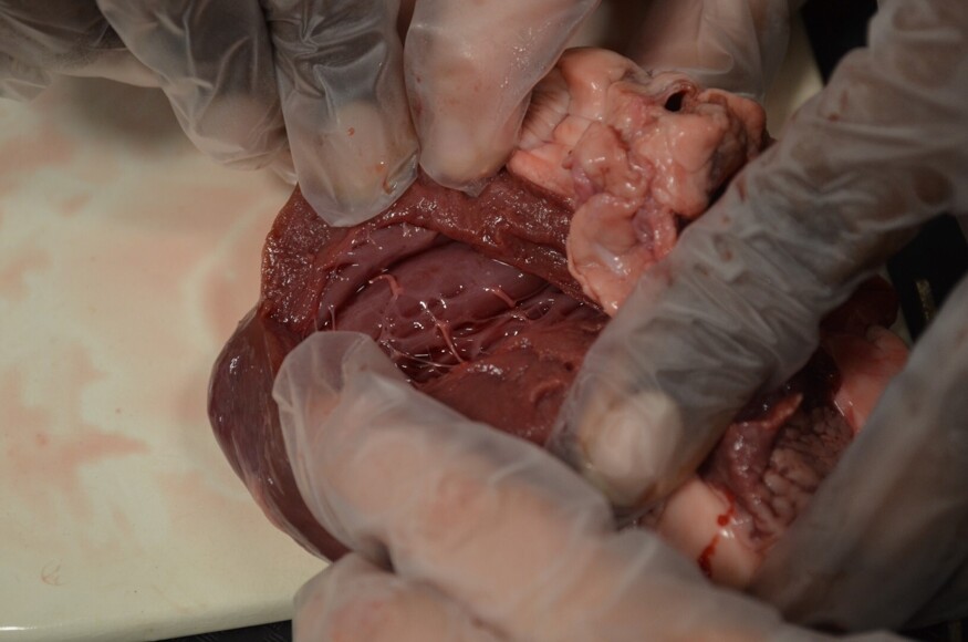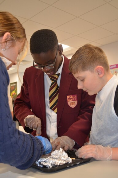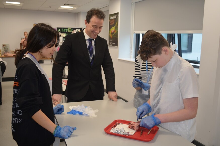 For Valentine's Day this year, our experienced Year 13 Biology students delivered a heart dissection workshop for younger students. The enthusiastic group cut open a sheep's heart, and were able to identify many of the internal features, including valves, papillary muscles, and chordae tendineae (the "heartstrings"). Some came across additional matter, such as blood clots, while others were quick to push their fingers into the major blood vessels to see how they felt!