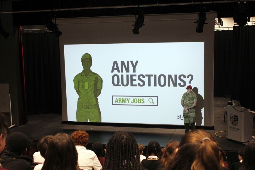 Years 9 and 10 enjoyed a visit from the British Army, including learning about army career opportunities, and taking part in team-building activities.