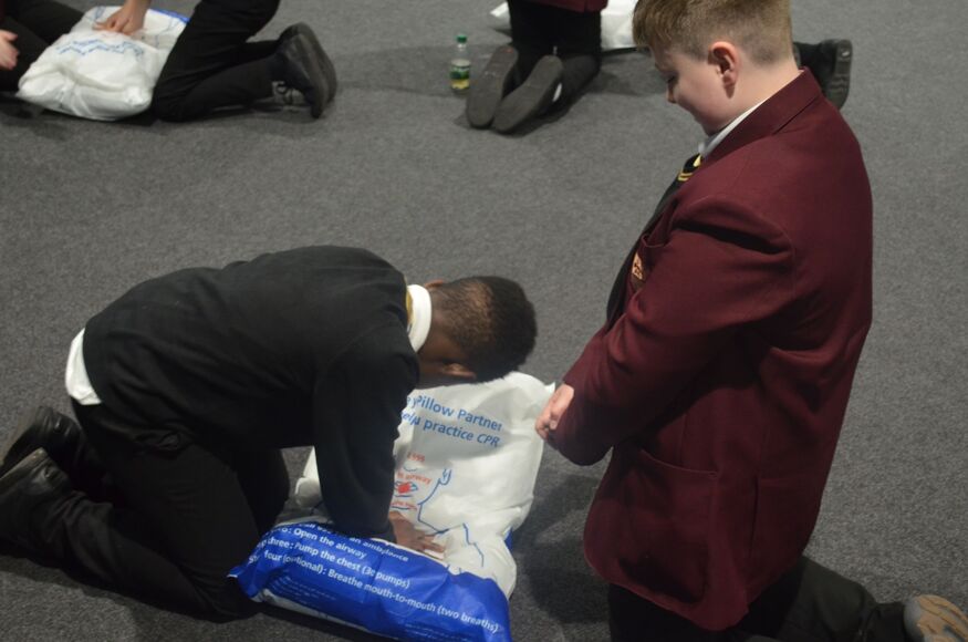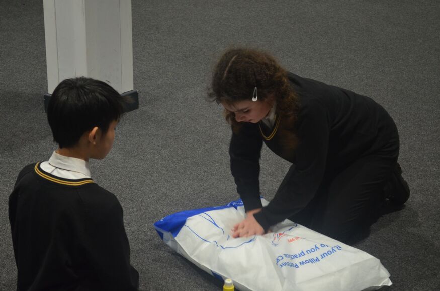As part of their PDP sessions, Years 7 to 11 form groups have been completing a mini-course in CPR. The 30 minute lifesaver course, led by Ms Brown, was designed for schools by the British Heart Foundation and uses specially designed pillow-covers to show where compressions need to be given.