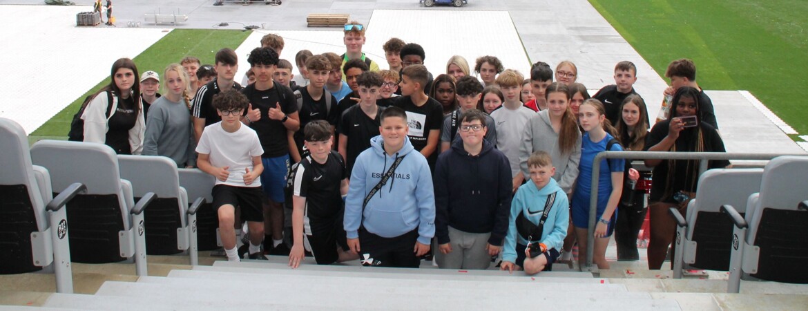 The half-term sports trip to Cologne, Germany, started packed full of activities. The students began with a stadium tour at the BayArena, home of Bayer Leverkusen. They were able to go into the dugouts at the side of the pitch, into the away team dressing room, and even into the VIP area.