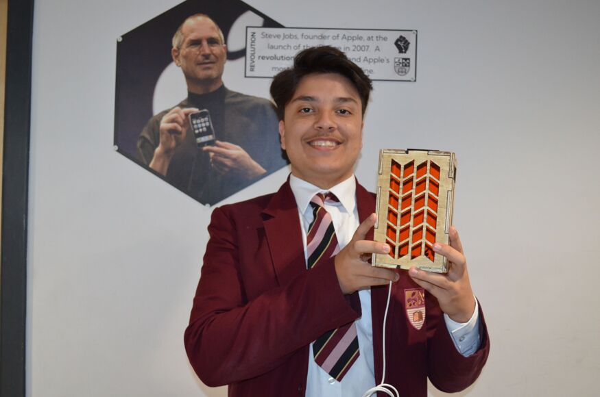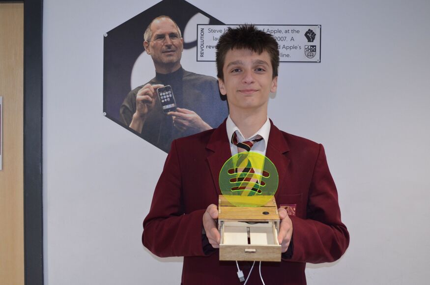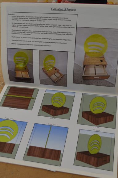Erik's design centred around presenting a recognisable logo, with carefully concealed wiring, and a drawer with its own clever stopping mechanism to prevent it being pulled out entirely.