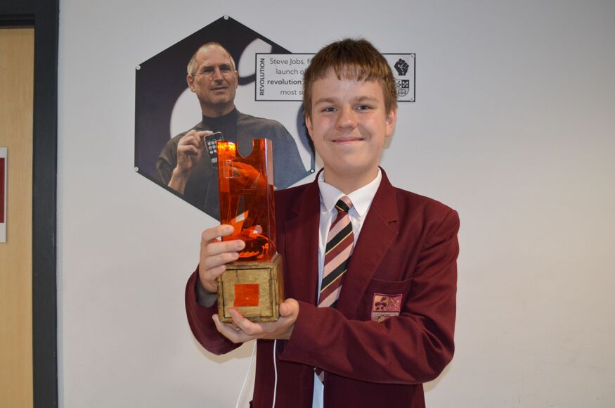 Gabriel chose a unique function for his solution to 'Light a Space' -- his design is intended to hold a game controller and a set of gaming headphones, on top of the eyecatching orange tower. He added a drawer to the bottom of the unit to act as a counterweight, and experimented with different finishes for the timber, such as wood stain and varnish.