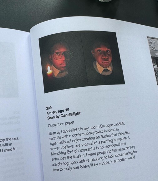 Aimee's double portrait, Sean by Candlelight, painted while she was in Year 13, was selected for display in both the online and on-site exhibitions. Only 300 students out of the 21,000 applicants were successfully selected, so it is an extraordinary achievement.