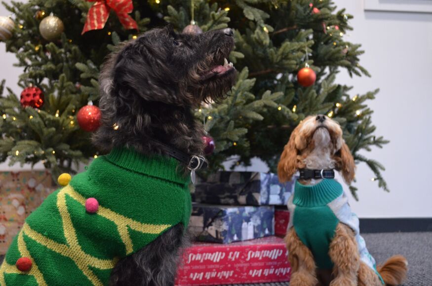 Hertswood Academy has been filled with festive cheer this week, thanks to our resident canine companions, Riley and Ada! Our furry friends have been spreading joy throughout the Academy, sporting their adorable Christmas jumpers. A big thank you to Kyle (Year 9) for helping to capture some special moments in front of the massive Hertswood tree!
