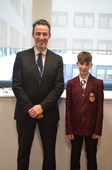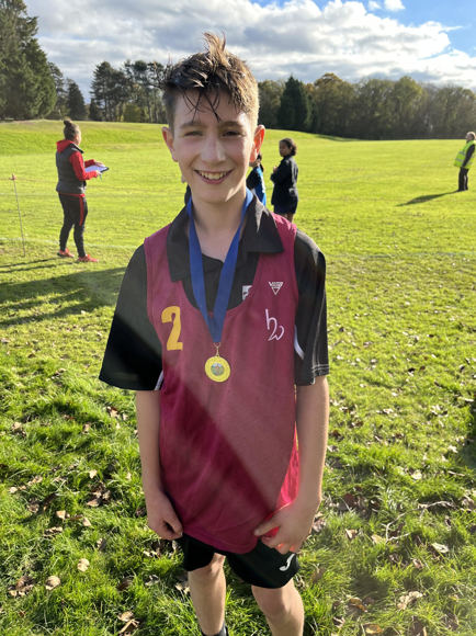 Huge congratulations to Ollie (Year 7) who earned first place, seen here shortly afterwards and back at school receiving a Headteacher's Award from Mr Gillett. The Year 7 boys finished in first place overall as a team as well!